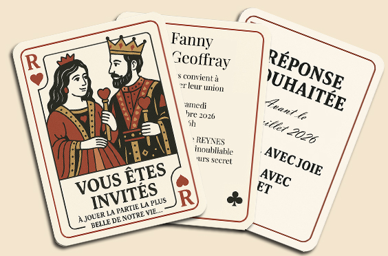Vous êtes invités à jouer la partie la plus belle de notre vie – Le 24 octobre 2026 à la mairie de Reynes pour la cérémonie.